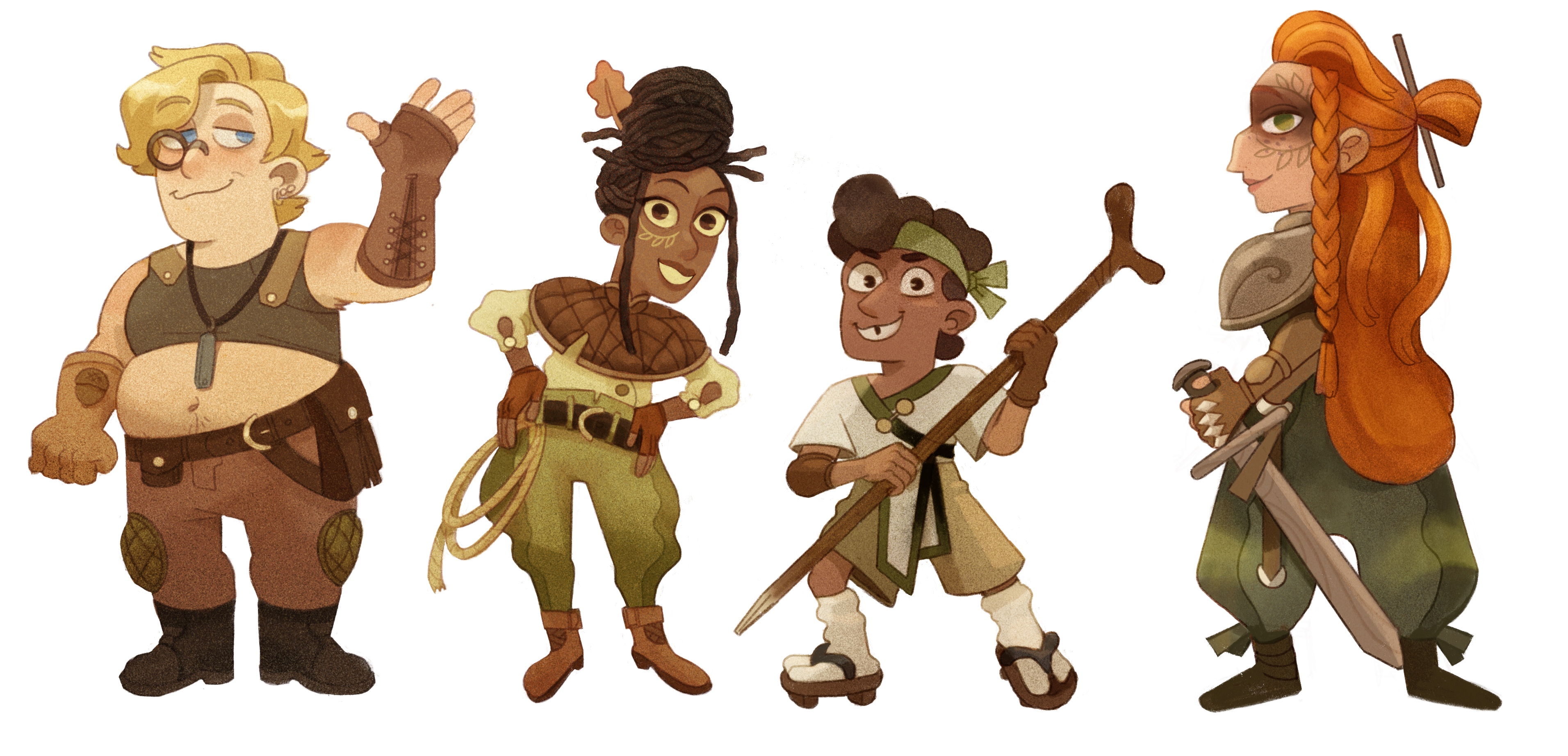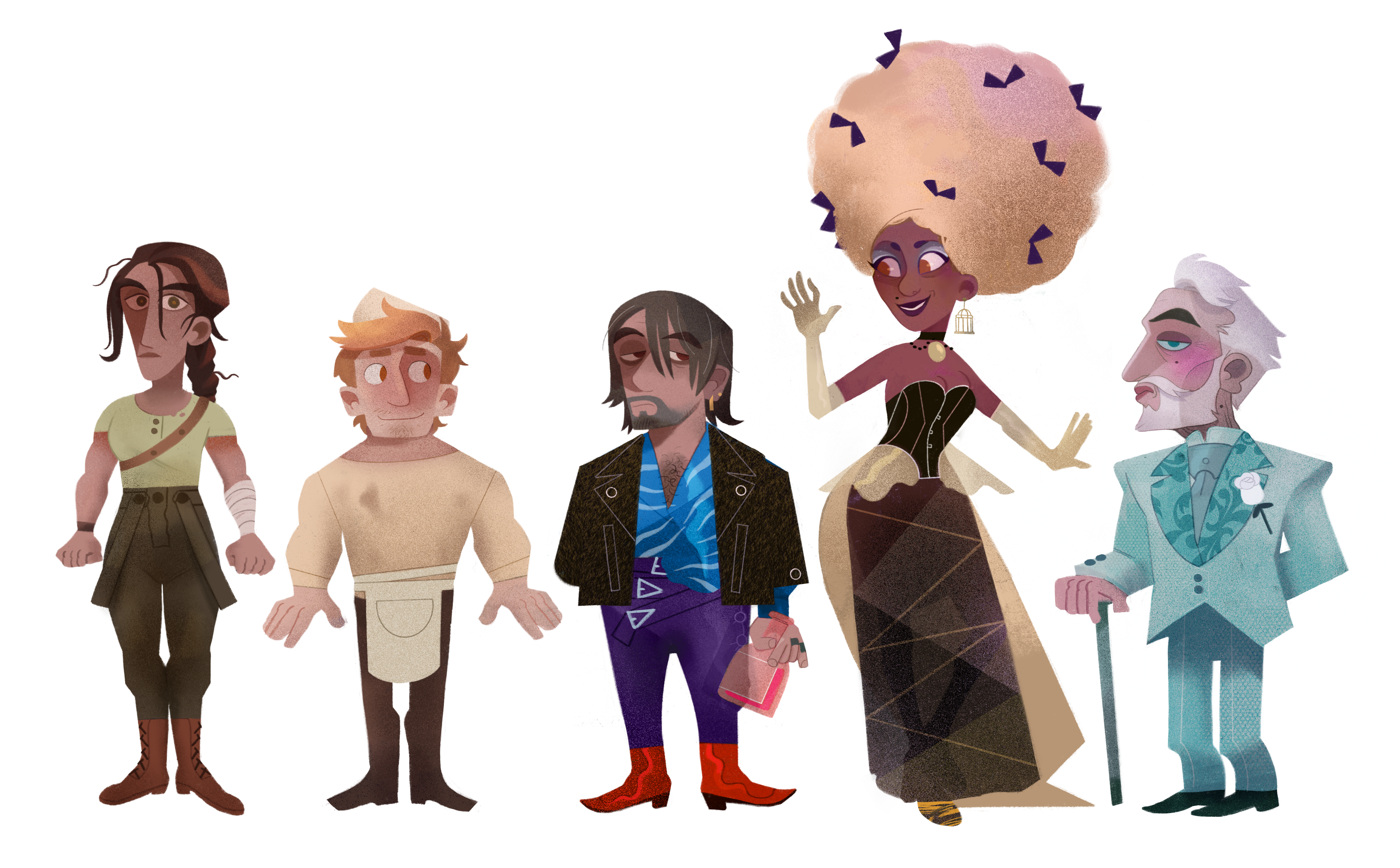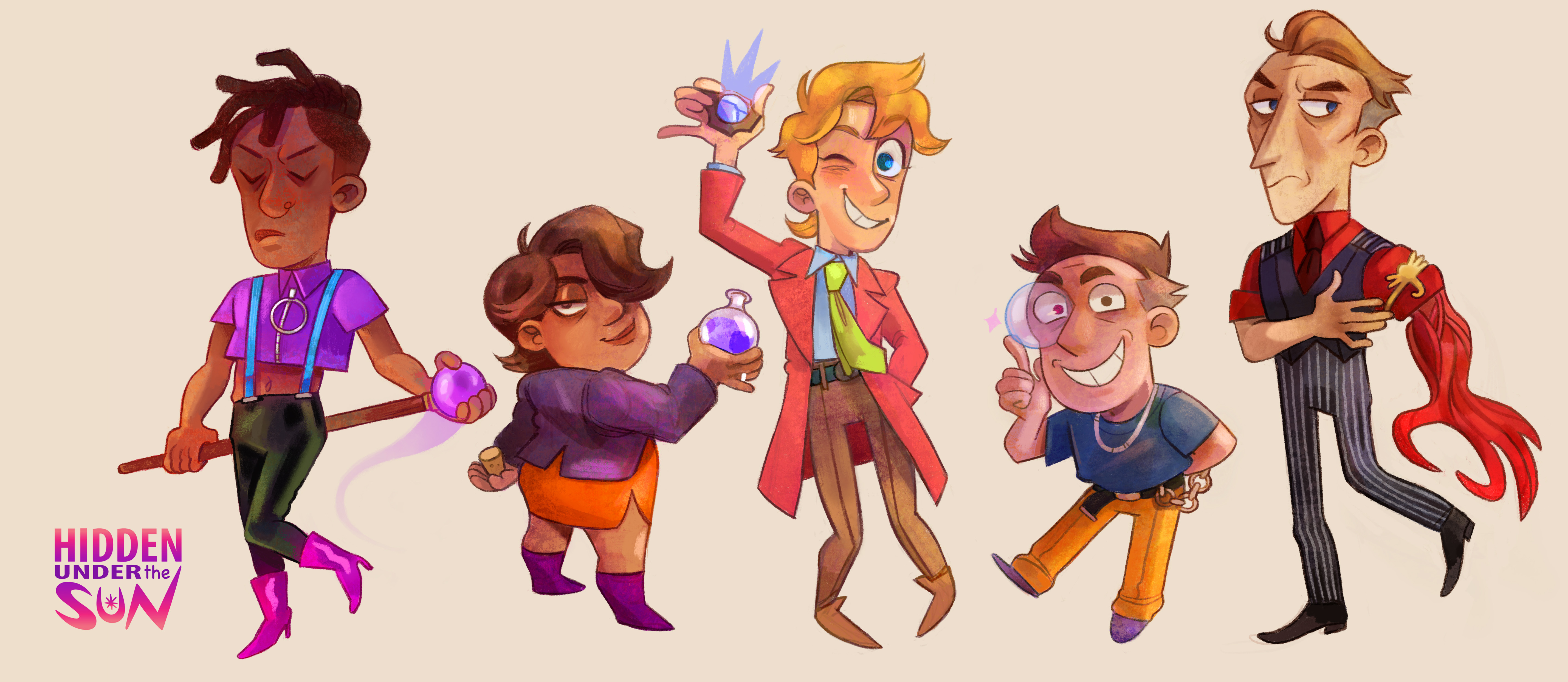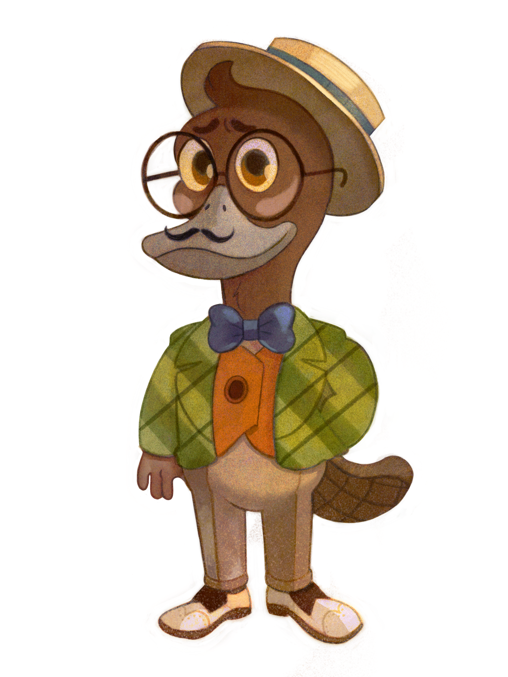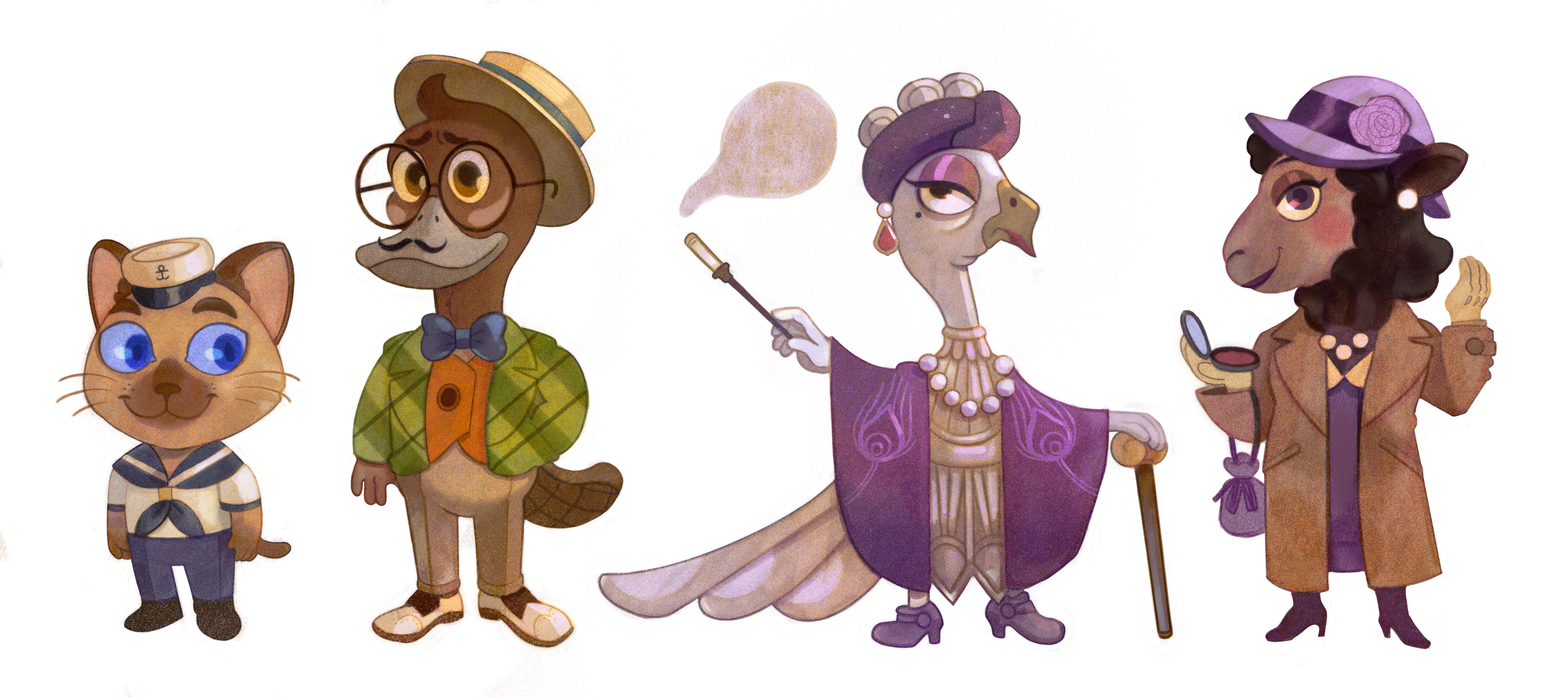 The main cast! Detective Plato Platypus, his assistant Gatito, the duchess Peahens and her niece Dolly.